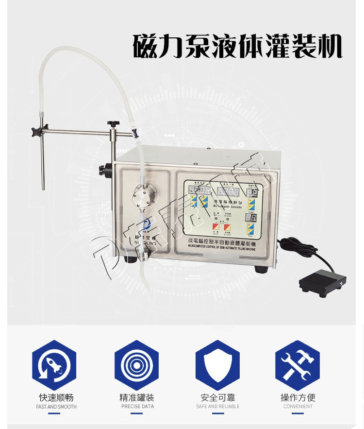 ⑦原料桶液位高低不宜相差太大,否則影響磁力泵液體灌裝機(jī)的精度;
