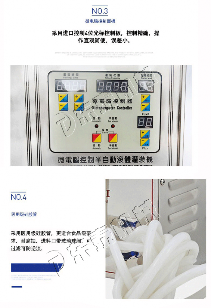 ⑦可配多個灌裝頭,常用的型號有:單泵機(jī)、雙泵機(jī)和四泵機(jī);